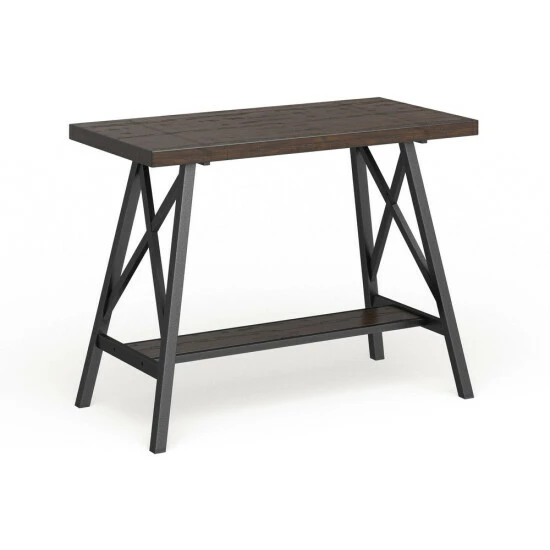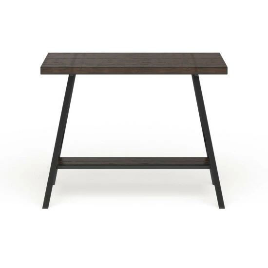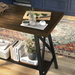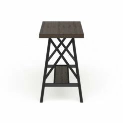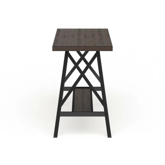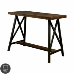 Finish your kitchen in rustic style with this creatively designed counter-height table. It shows off a rustic look as it features a distressed and weathered oak finish that plays into industrial, farmhouse, or casual contemporary decor. The table boasts metal legs with open cross-shaped supports that bring an industrial vibe and mixed materials aesthetic. The base is further enhanced with a wide bottom cross bar that offers a perfect place to rest your feet. In addition, it ensures extra durability and stability for everyday use of this charming table in your home. This rectangular table features a thick wood plank tabletop in a medium oak finish that creates a natural look and encourages a rustic, inviting look while providing contrast against its black finish metal base.