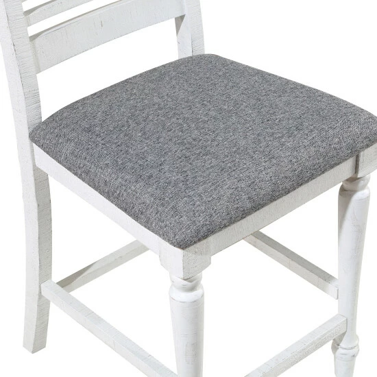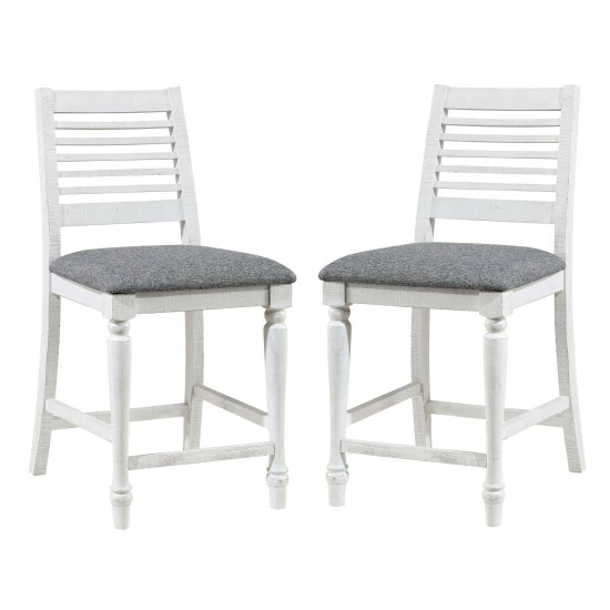 Contemporary and timeless, these counter height chairs feature a clean, two-tone look. Contrasting colors lend to a variety of existing color palettes within a home while ladderback style backrests and an upholstered seat provide long-lasting support.