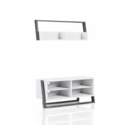 Update your home entertainment in style with this TV stand and floating shelf set from Furniture of America. The entire set is crafted with your choice of two-tone white and distressed grey finish or white and weathered white finish that adds a rustic allure to any room. The bottom portion features room for your flat screen and four storage compartments for devices and accessories. The floating shelf features additional storage and display space in the form of open shelving and adds a striking visual to any space.