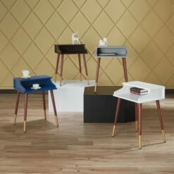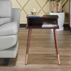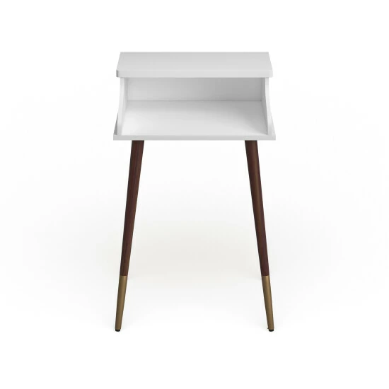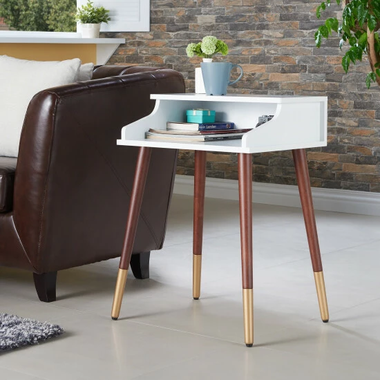 Choose between two amazing finishes and achieve the fun retro look you have been looking for with this mid-century modern end table. The open shelf top is accented with tapered angular legs that boast a unique two-tone look fit for the designer in all of us.