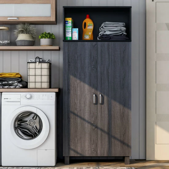 - 2 doors with silver-finished handles