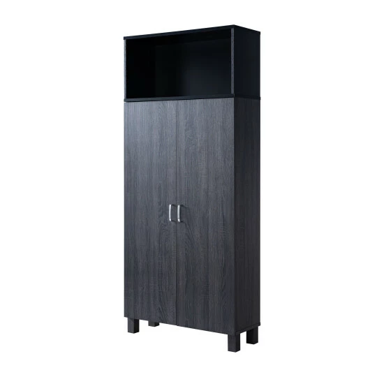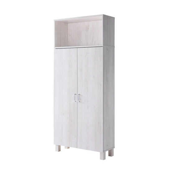 Organize clothing or bedding in the Jessica armoire from Furniture of America. The veneer frame features two doors that open to reveal four internal shelves, while an open top shelf offers additional storage. Choose from two finishes to complement your contemporary decor.