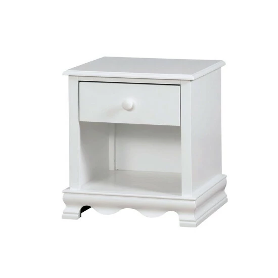Create a room your child will adore with this transitional solid wood nightstand from Furniture of America. This petite nightstand comes in two vibrant colors – brilliant white or pink with dark pink bow accent. The tabletop is spacious enough for a vase, lamp, or knickknacks, while the single drawer features plenty of room for storing linens, books, toys, and more.