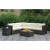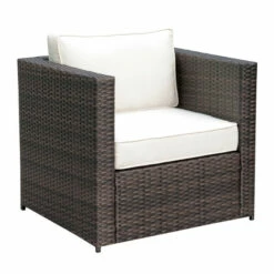 - Constructed with aluminum, polyurethane wicker rattan, polyester