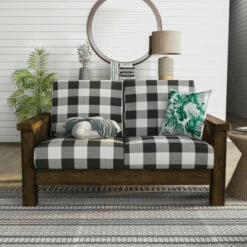Create the warm and inviting living room you’ve dreamed of with the bold oak frames and plaid upholstery of this rustic loveseat. Delivering comfortable seating, the loveseat pairs plush cushions with strong lines and slatted arms that add character.