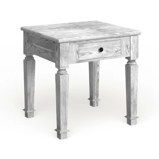 - end table finished in weathered antique white finish
