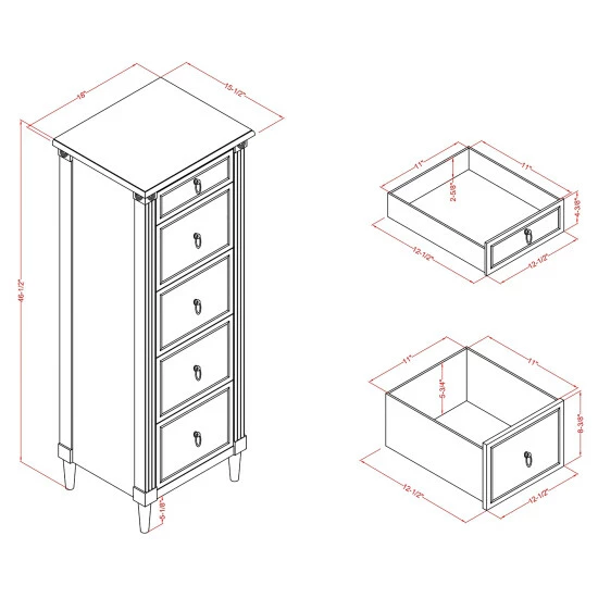 - Overall: 46.5 inches high x 18 inches wide x 15.5 inches deep