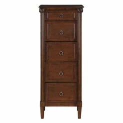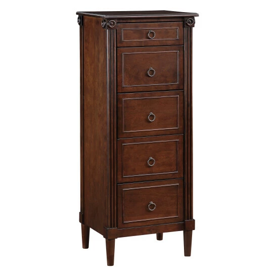 Bring stylish storage to a bedroom or living area with this charming, traditional five-drawer chest. Studded with classic details like medallions and fluted trim, the chest delivers ample space for everything from clothing to craft accessories to linens.