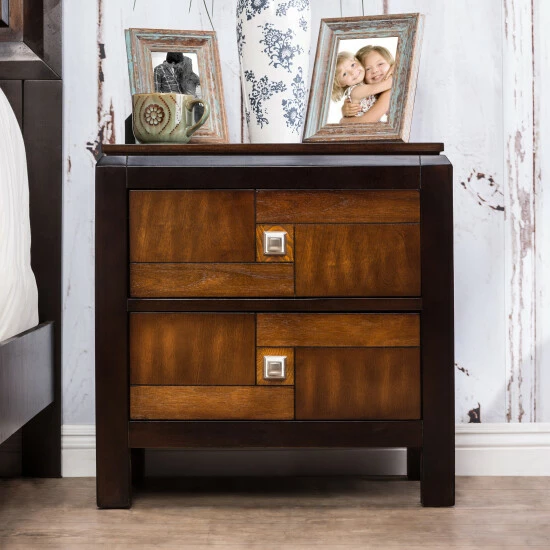 Add some character and charm to your personal oasis, with this two-piece bedroom set. This transitional piece includes one bed and one nightstand. Available in three different sizes, this set will add plenty of personalized glamour.