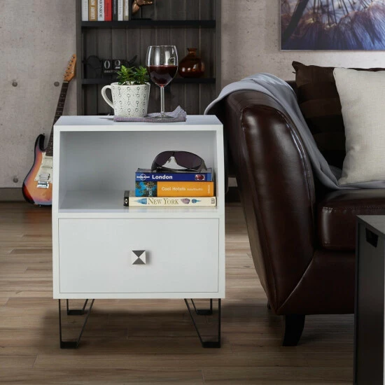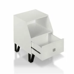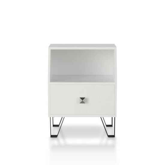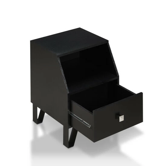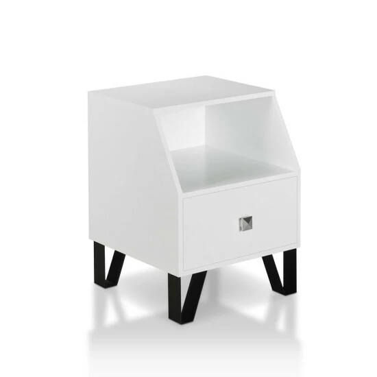 Keep your favorite book at arm’s length by placing this side table next to your sofa or armchair. Crafted by Furniture of America, this sleek side table features a contemporary and modern form with angular legs. It brings a modern flair to your living space with your own personal touch, as you can select its finish with five different options to choose from. A spacious drawer at the bottom of the table and an open shelf above it provide ample storage for your convenience. The pyramidal hardware makes for an exciting display for this modern and contemporary table, blending with casual settings for the perfect touch.