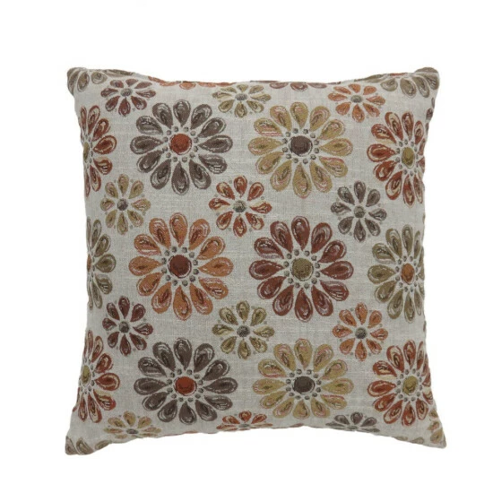 This throw pillow’s flower print in a variety of hues will perk up your surroundings. Alternating large and small floral daisy designs dot this textile with splendor.