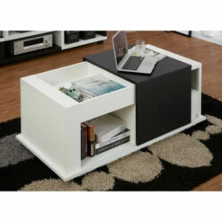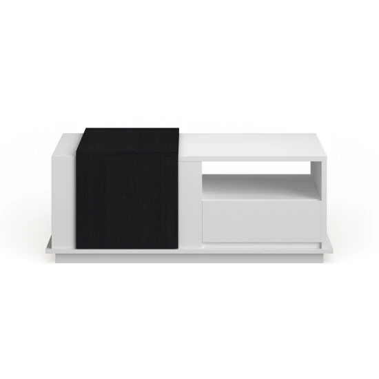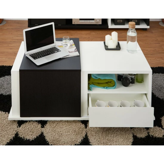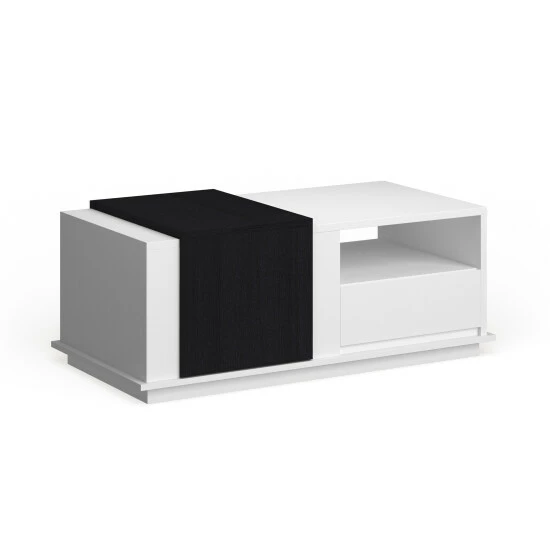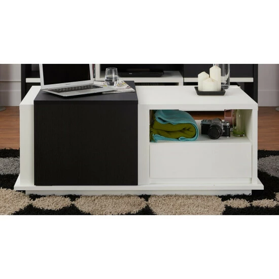 The Kenn Coffee Table is creatively designed with hidden storage compartments and a unique sliding top. Slim and compact, the two-tone coffee table features an open shelf with convenient dual-side access. Display decor or store items for convenience. Single drawer keeps items hidden while sliding the top reveals spacious storage compartments. Keep magazines and coffee table books stowed on top while the bottom organizes items for a clutter free living space. Designed for Modern style simplicity and functionality, the Kenn Coffee Table delivers.