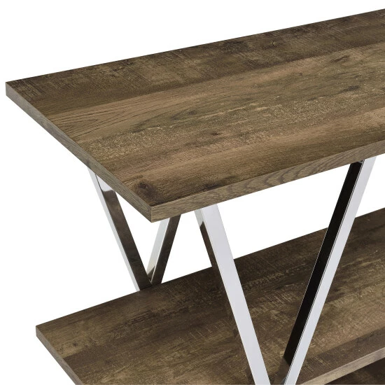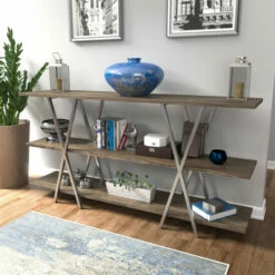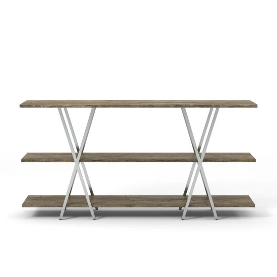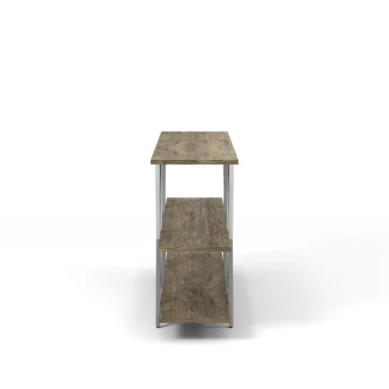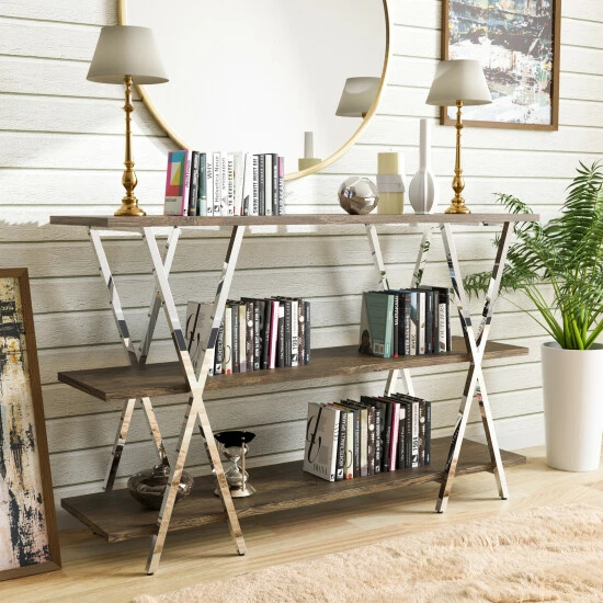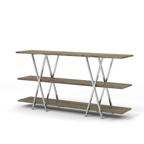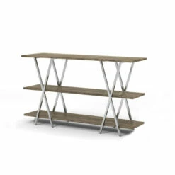 Curate your collections with on-trend display on this three-level console table. Made by Furniture of America for the Kent collection, this is a contemporary metal console table that makes an outstanding aesthetic impression. Open-style shelving with X-shaped stretcher bars lets your furnishings stand out beautifully, and a middle leg boosts the support to keep this spacious table steady. The metal framing adds to the stability and creates contrasting finishes to boost the glam look. Its chrome finish gives it a hint of glam while still working with modern and contemporary decor styles. Enjoy the beautiful appearance and function of this metal console table.