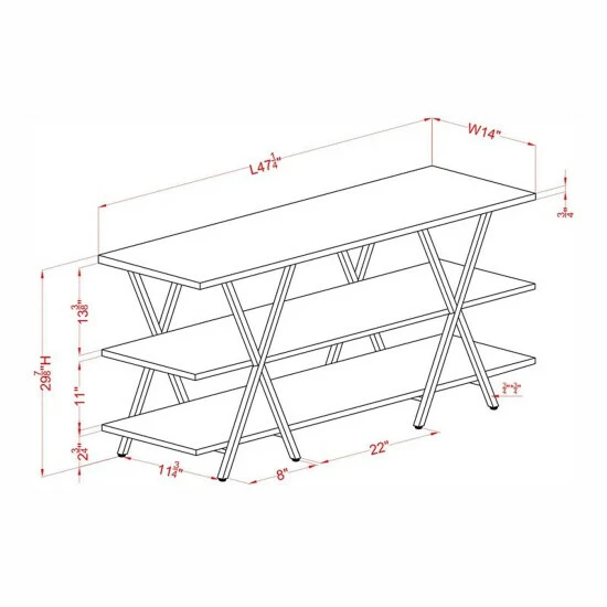 - Large table dimensions: 29.5 inches high x 47.25 inches long x 14 inches wide