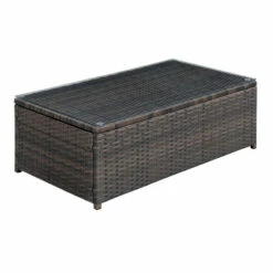 This lovely faux rattan wicker patio seating set is beautifully designed to give you endless customized options for outdoor entertaining. The modular pieces include two armchairs, three armless chairs, and one corner chair. Seating pieces have durable polyester canvas with welted trim on box edge cushions and each table is topped in 5mm clear tempered glass. The set is UV and water resistant with a durable faux rattan wicker and aluminum frame.