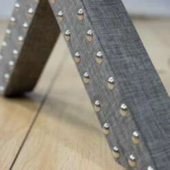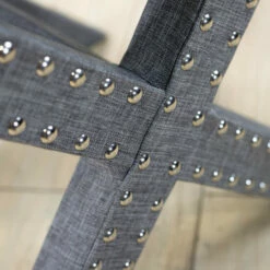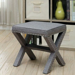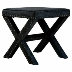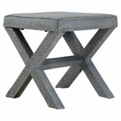 Add to your home with this traditional linen X-shaped ottoman. Featuring a simple silhouette, this ottoman brings subtle elegance to any space. With its minimalist form, the linen-upholstered ottoman design is accentuated with gleaming silver nailhead trim tracing the base of its seat and its angular legs.