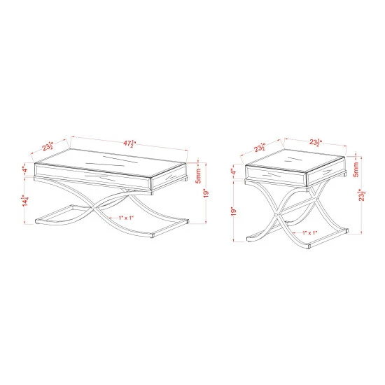 Metal can dramatically transform your living space and this glamorous two-piece accent coffee table and end table set is a prime example. The beautiful X-shaped curves create unique leg designs that steadily uphold the smoked mirror tabletops. The shape of this contemporary frame is ideal for accentuating the glistening chrome finishes of the metal tubing. The brass finish gives this table set an outstanding design while making a lasting impression on guests of all ages. Carefully crafted from glass and metal, this is a durable set that will stand the test of time. Use it to incorporate modern and contemporary elements into your transitional style living space.