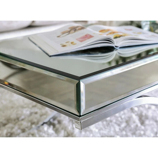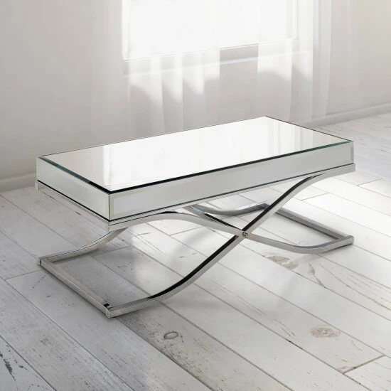 Metal can dramatically transform your living space and this glamorous accent coffee table is a prime example. The beautiful X-shaped curves create unique leg designs that steadily uphold the smoked mirror tabletops. The shape of this contemporary frame is ideal for accentuating the glistening chrome finishes of the metal tubing. The chrome finish gives this table set an outstanding design while making a lasting impression on guests of all ages. Carefully crafted from glass and metal, this is a durable coffee table that will stand the test of time. Use it to incorporate modern and contemporary elements into your transitional style living space.