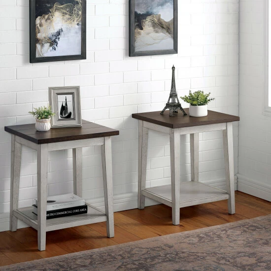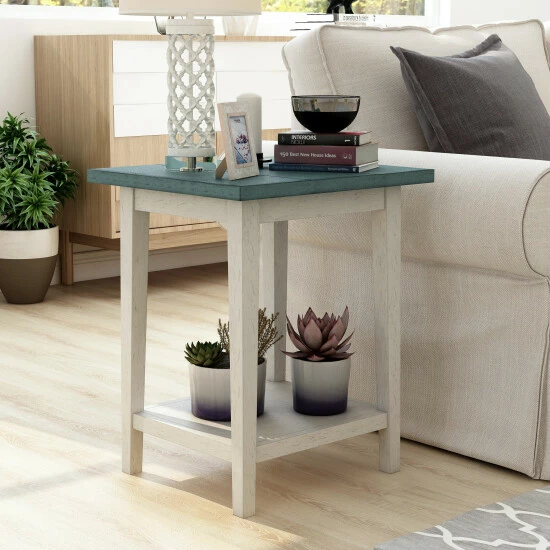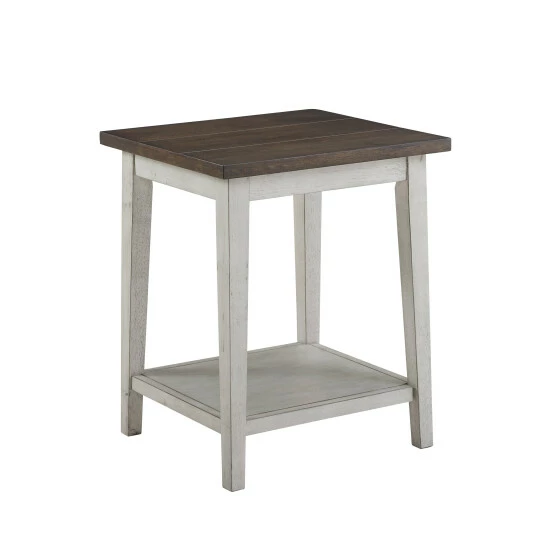 Bring a decidedly casual ambiance to your space with this cottage-inspired wood side table. It shows off lovely wood accents with light distressing over an antique white finish base. Tapering legs and a lower shelf add character and provide a spot for books or other knickknacks. The tabletop delivers an appealing, contrasting finish that draws attention to your decor, while its plank-style design perfectly accentuates its welcoming aura.