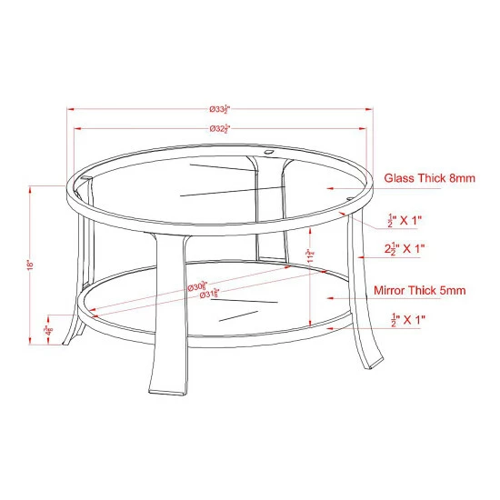 - Coffee table dimensions: 18 inches high x 33.75 inches wide x 33.75 inches long