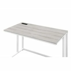 A clean-lined silhouette adds practical glamour to this contemporary writing desk. A rich, two-tone finish lends classic allure to its fashionable and functional design. A built-in outlet with USB keeps devices powered throughout the day. A clean, classic silhouette makes this piece a truly sophisticated home office essential.