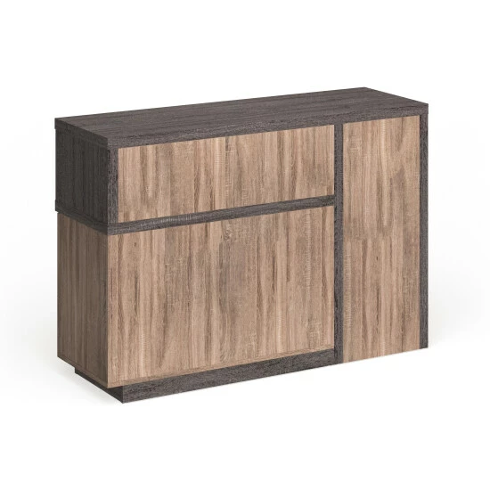 - 2-tone (weathered grey and natural wood) finish for contrasting beauty