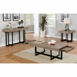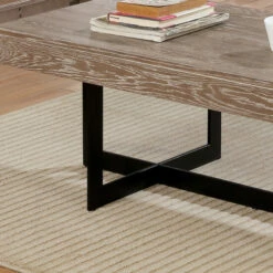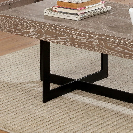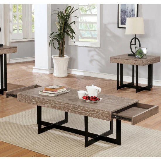 The right design can turn accent tables into a focal point in a family living space, and this Levant cross-base coffee table does just that. A stylish silhouette and a blend of sleek materials join to create a pleasing aesthetic perfect for a high-traffic, easy-living family entertaining space or living room. A true rustic transitional feel comes from industrial-inspired elements including a weathered oak finish wood-look MDF top section and a sand black finish metal base with an updated cross-bar configuration that adds keen visual interest. Take advantage of side sliding drawers that expand storage space. This charming coffee table ties together a custom seating ensemble as it adds form and function.