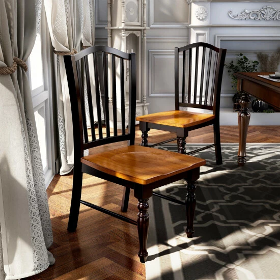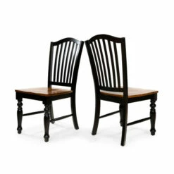 Invite the warm feeling of home sweet home into any kitchen or dining area. This set of two country style, two-tone dining chairs is a charming creation from Furniture of America’s Levole collection. Inspired by traditional southwestern designs, this set flaunts elegant, turned legs and bright wooden seats that grace the smooth, dark body of each chair. Solid wood construction offers lasting durability as it exudes a premium look and feel. Spindle back design and leg supports for extended resting.