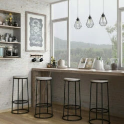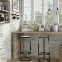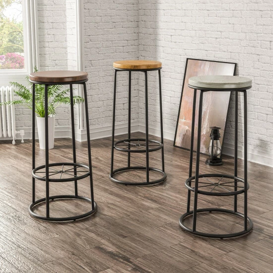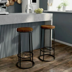 Instantly elevate the casual or industrial design credentials of your kitchen or bar with this set to two rustic metal bar stools from Furniture of America. The Lodz bar stool features a sturdy metal frame with a wide base for added stability. Each stool is equipped with a wagon wheel styled footrest that adds appealing comfort and support to its backless design. The unique industrial style lends a cool vibe to any area, and the round MDF seat provides a comfortable seating option for a cup of coffee in the morning, a nightcap before bed, and everything in between. Assorted stylish finishes offer the perfect matching look for your decor.