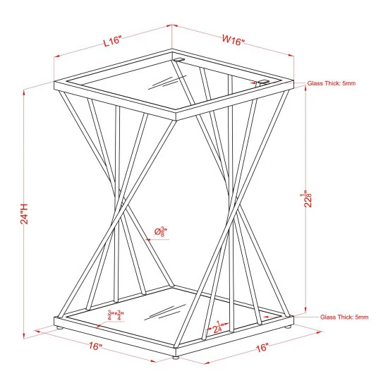 - Overall: 24 inches high x 16 inches wide x 16 inches long