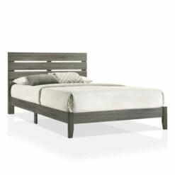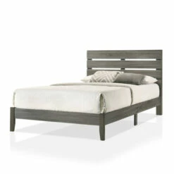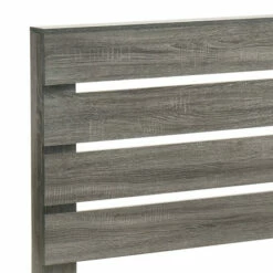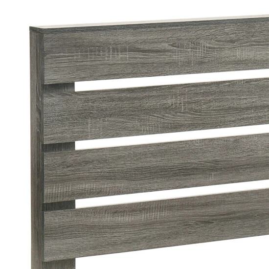 Add the ideal bit of rustic charm to your sleeping quarters with this crate-inspired bedframe. The tall slatted headboard is an eye-catching contrast to the low profile footboard. This frame features tapered front legs and extra hidden leg support.