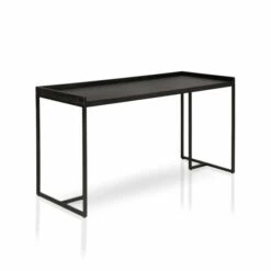 Give your office space an industrial look with this black desk. Made by Furniture of America for the Magnus collection, this is a sleek and stylish piece for modern office spaces. The lipped top is a stylish design, perfect for being recessed along any wall and preventing items from falling on the floor. A window-facing position works as well for this writing desk, with its open-back design and geometric base bringing you plenty of stylish appeal. You’ll find the modern metal frame desk is quite handy with two USB ports and an outlet to charge your laptop, tablet, and phone.