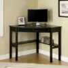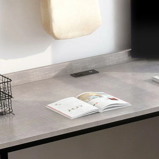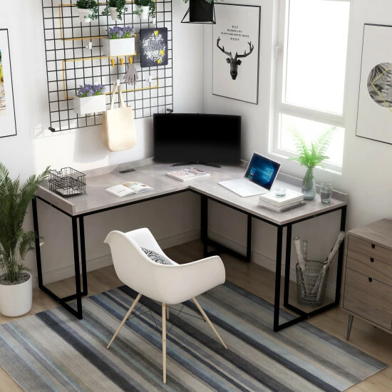 Find joy in waking up on a Monday morning and starting your work week off right with a proper home office setting. This two-toned writing desk establishes a modern work environment free of overstressed tradition. The black frame is a slender design, with a simple and yet stylish look. It stands sturdy in its poise, elevating a grey varnished tabletop. This sleek desk exposes a subtle lipped tabletop for a smart appearance with functional value. It prevents loose papers, pens, and pencils from falling off the edge of the table as you work on multiple projects. The vast L-shaped writing desk is made to allow you a place for your computer or laptop and a space for taking notes simultaneously. With plenty of surface area, you find writing while listening in to an online lecture or video conference made easy. With a corner design, you’re likely to save office space.