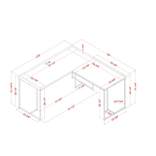 - Large desk: 31.25 inches high x 59 inches wide x 23.62 inches deep