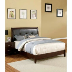 Make a sleek and refined impact in your bedroom with this handsome platform bed. The wood frame hugs the espresso faux leather headboard snugly, providing padding to rest and read at bedtime. The tall headboard boasts a slight curve that adds a dash of elegance in your bedroom.
