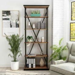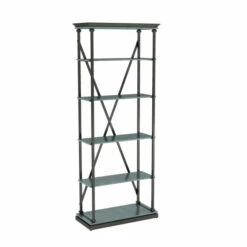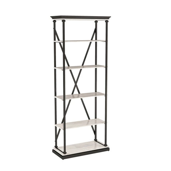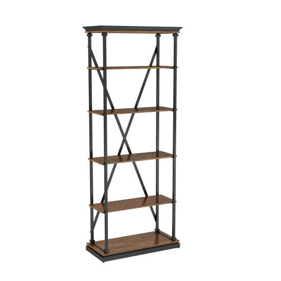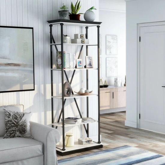 Give your living room a distinguished atmosphere with this handsome, transitional five-shelf bookcase. This bookcase features a two-tone finish with subtle molded embellishments for a look that’s cool and classy all at once. Five spacious shelves allow plenty of room for photos, books, and decorative effects to customize decor.