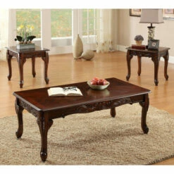 Add elegance and style to your home with this 3-piece 48-inch coffee and side table set. This set boasts incredible ornate floral molding to capture the essence of traditional decor. Two outstanding color options are available, allowing you to customize your traditional living area with this set of tables.
