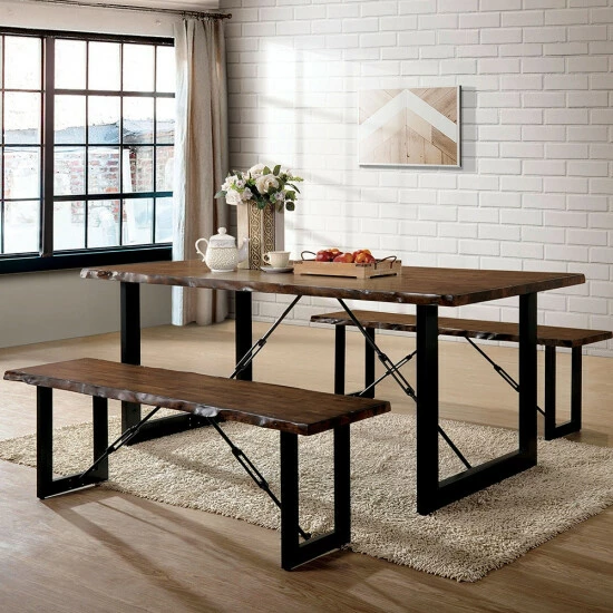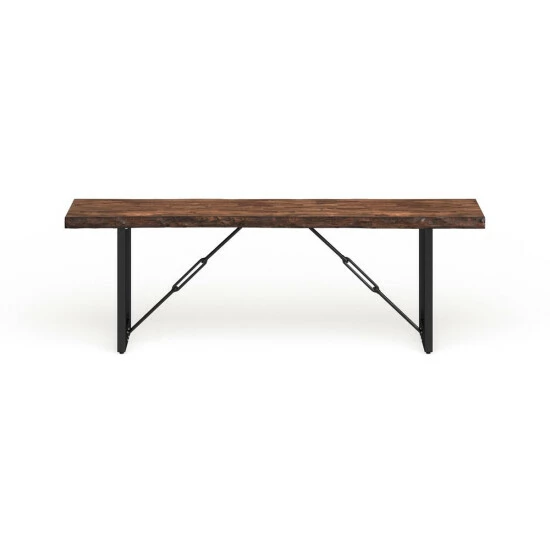 Take the rustic industrial ambiance of your home to a whole new level when you add this bench from Furniture of America, which features the perfect blend of materials and tones. It oozes with farmhouse allure, as this bench features a rough cut lumber seat that has been beautifully stained in a rich walnut finish for an unmistakably rustic appeal. The wide seat is expansive enough to easily seat up to 3 people, and it stands on two sturdy metal U-shaped legs with metal diagonal supports in a classic black finish for an industrial touch that reinforces its stability. Built for the dining room, this bench is versatile enough for use in the living room or home bar area.