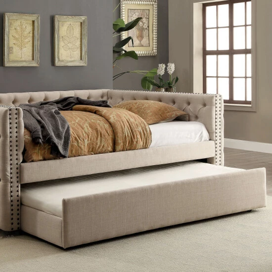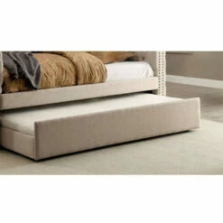 Create a beautifully decorated guest room with the unimaginable comfort of this contemporary trundle that showcases soft linen-like fabric and foam filled padding. This ivory beauty is a real stunner and offers added sleeping space for overnight guests.