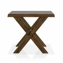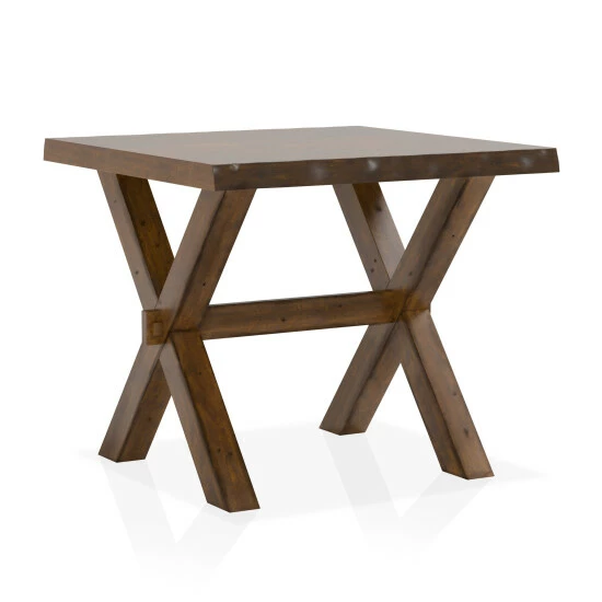 Every day is an upbeat day when the Mav walnut solid wood end table anchors a casual, carefree transitional living space. This charming end table from Furniture of America transforms a family room or living room into a festive center with a whimsical picnic table motif. Inspired by the iconic look of patio furniture, it creates a mood-lifting look and feel, and a versatile palette with a lush walnut-finish solid wood and wood veneer build. Chic live edges embellish a rustic touch, as cross-legs with a beam support ensures a sturdy placement. Choose this end table to add a creative, enticing mood with limitless accent options.