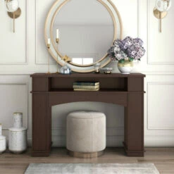 The magnificent Mete Console Table by Furniture of America is reminiscent of a beautiful bay bridge, bringing your entryway or living room together for one stylish storage option. With am arching table apron and linear wood accents, it creates an architectural aesthetic that makes a modern or contemporary impression. One open shelf provides spacious storage for quick storage and convenient access to items. Use the top’s generous surface for displaying decor or photo frames and store storage baskets beneath for easy organizing. Finished in a rich Walnut, the slim console table creates a well-stated aesthetic that focuses your entryway or hallway.