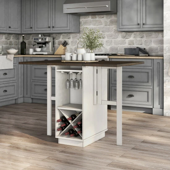 - EXPANDING TABLETOP – Two drop leaves with folding supports for ultimate versatility