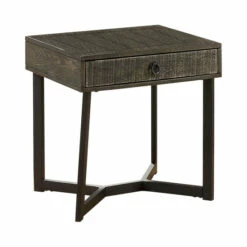 Pull together a rustic, industrial-style aesthetic in a casual family room or living room with this three-piece accent table set from Furniture of America. The Mini accent table set impresses with a farmhouse feel dressed up with the dramatic ambiance of industrial era design. Beginning with espresso finish metal bases shaped in an angular fashion, this set offers a stylish display. Cabinet tops with functional drawers create space for storage as they deliver a cool wire-brushed two-tone dark oak finish. Make any living space a carefree place to relax with this set.