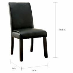 Simple elegance creates a compelling look in a modern or transitional space with this set of two sophisticated contemporary dining side chairs. The Mivo dining chair from Furniture of America delivers a streamlined silhouette with updated appeal. A Parson-style design features a subtly curved back and back legs, with tapered front legs. A walnut finish wood and wood veneer frame hosts a seating unit wrapped in smooth espresso finish faux leather. A plush foam fill and novel tucked side design offers ultimate seating comfort and accented design appeal. This sleek dining chair is a perfect addition to modern or transitional dining ensembles and yields hours of sheer seating comfort.