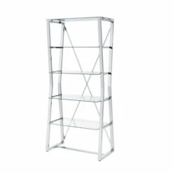 Create the perfect spot to show off knickknacks, art, or books with this contemporary glass bookcase. Its chrome finish frame shows off subtle angles that create an hourglass profile on either side. Tempered glass shelves enhance a clean, modern presentation while providing excellent space for both storage and display. Makes the perfect accent to a contemporary great room or home office.