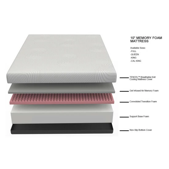 Create the bedroom retreat of your dreams with this contemporary ten-inch memory foam mattress. Designed for the best night’s sleep, it features gel-infused air memory foam wrapped in a TENCELโข cellulosic fiber cover that helps to keep you cool and comfortable all night long.