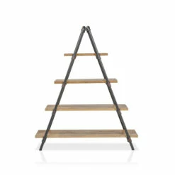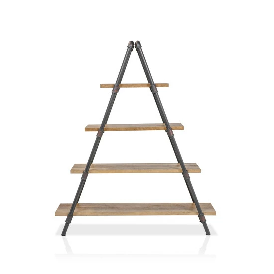 Erect an accessible hub for the display of books, art, plants, or tchotchkes with this ladder bookcase by Furniture of America. Its dramatic A-frame shape will bring wow-factor to your living space. This bookcase projects an industrial vibe owing to a wood-and-metal frame constructed for maximum sturdiness. Open shelves ensure an easy reach for displayed items, and a weathered finish suits this bookcase to casual and transitional decor. Pipe-inspired framing adds to its industrial and rustic appearance, with a striking bronze finish completing its appearance. Angled legs provide support to this piece, creating an attractive display that lasts for years in your living space.