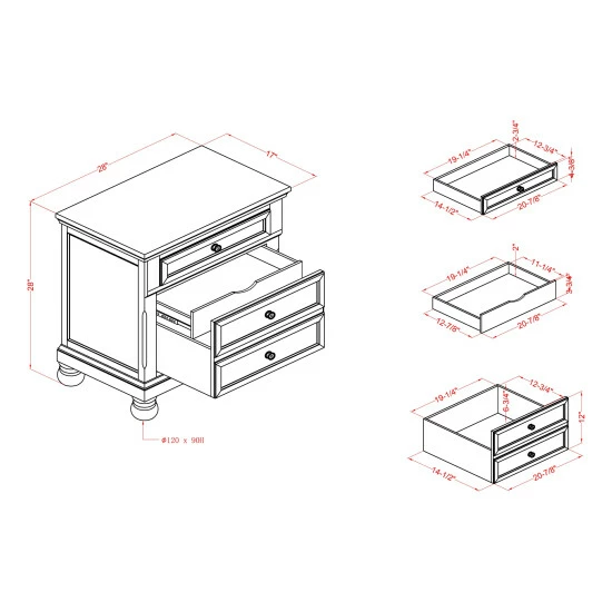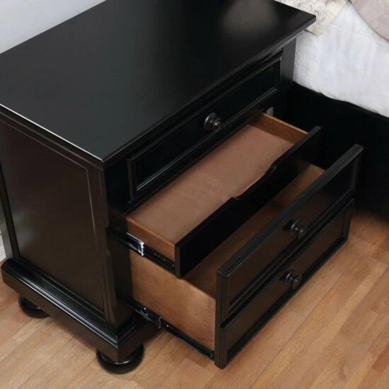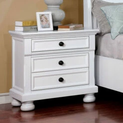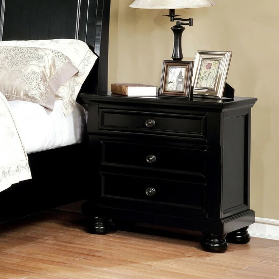 Update your bedroom in traditional and modern way with this gorgeous nightstand from Furniture of America. Available in black, white or brown cherry finish, this nightstand is constructed with three drawers that will give you plenty of storage capability to keep your valuables. Finished with classic bun feet and available in rich brown cherry, black or classic white, this piece will blend seamlessly with various decor styles.
