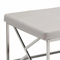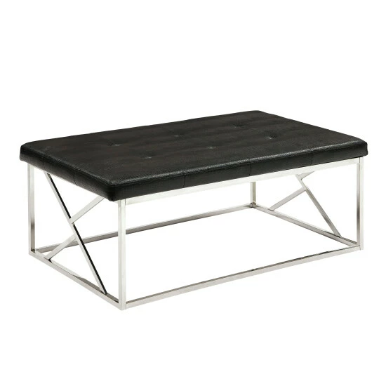 Give your home a bold, sophisticated touch with this scintillating contemporary accent bench from Furniture of America, which features a creative blend of stunning tones, lines, and materials. It features an eye-catching two-tone design that consists of faux leather upholstery and contrasting chrome legs. The padded seat is accented with exquisite tufted accents that are elevated in style by the chic crocodile texturing of the faux leather. The brilliant sleek metal frame offers a gorgeous contrast in style and color, and it’s accented by geometric, triangle shaped side supports. The sturdy base and legs offer support with a gleaming edge, making an electrifying piece perfect for any entryway, living room, or bedroom..