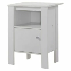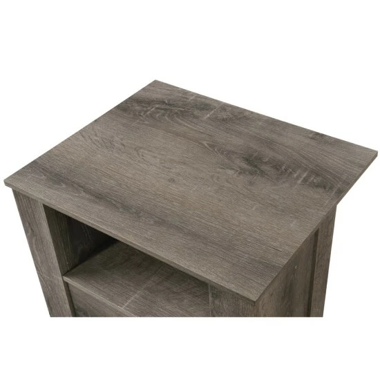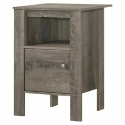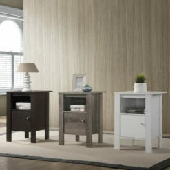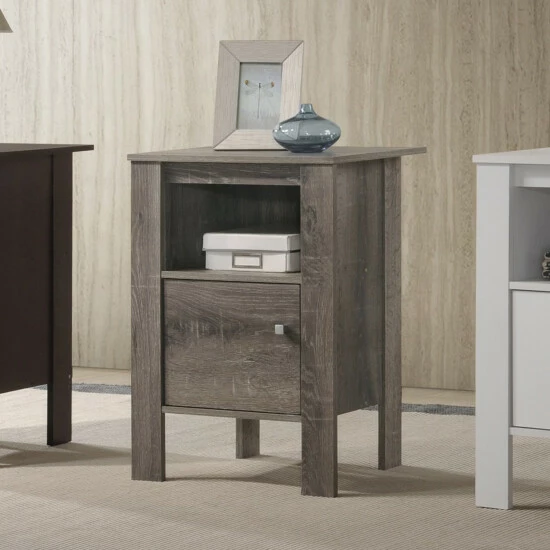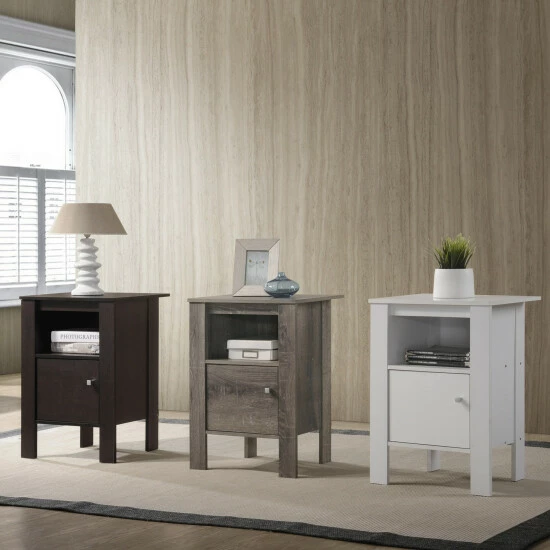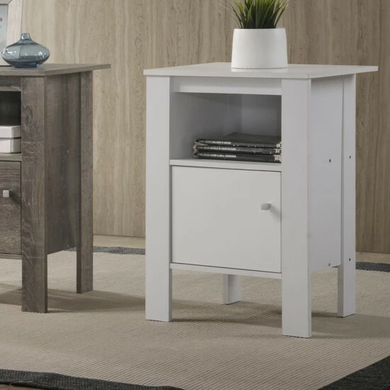 Punctuate your seating with this contemporary Nen side table from Furniture of America. A simple silhouette with clean lines fits neatly near your sofa to keep ample storage within reach, with an open shelf and a hidden cabinet for versatile storage and display options. An overhanging tabletop provides an expansive area to place table lamps and other items within convenient reach. Bold and straight legs offer this piece lasting durability and stability for a quality side table. Solid wood and wood veneers produce a strong, this side table will blend with your space. Choose this piece for casual and transitional style living spaces.